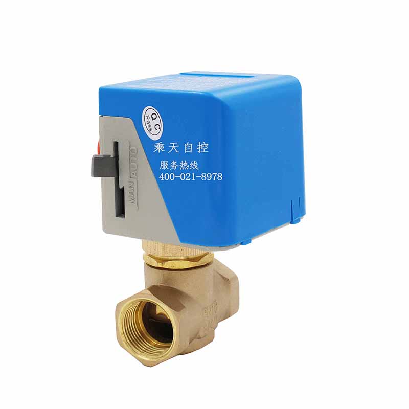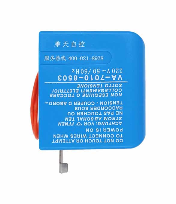 VA7010系列风机盘管电动阀适用于风机盘管水流通断控制,产品由VA7010系列阀门驱动器和VA7010系列铜阀组成。驱动器由单向磁滞同步电机驱动,具备弹簧复位及手动开阀杠杆操纵功能。阀门不工作时处于常闭状态,当需要工作时,由温控器提供一个开启信号,使电动阀接通交流电源而动作,开启阀门,冷冻水或热水进入风机盘管,为房间提供冷气或暖气;当室温达到温控器设定值时,温控器令电动阀断电,复位弹簧使阀门关闭,从而截断进入风机盘管的水流。通过阀门关闭或开启,使室温始终保持在温控器设定的温度范围内。