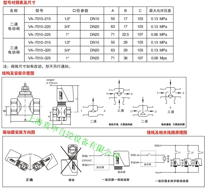 VA7010系列电动阀之驱动器与阀体采用螺套联接方式,可以在阀门安装之后,再安装驱动器,现场装配,接线灵活、方便。